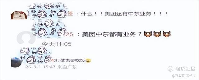 接二连三劲爆消息,网友们瞬间不淡定了,有不少网友直言“什么!!美团还有中东业务!!”,“美团中东都有业务?”,“打仗也要吃饭”,另外笔者发现更有IP地址显示为卡塔尔的网友现身说法“昨天点了两单(美团),其中一单还开车送给我!”