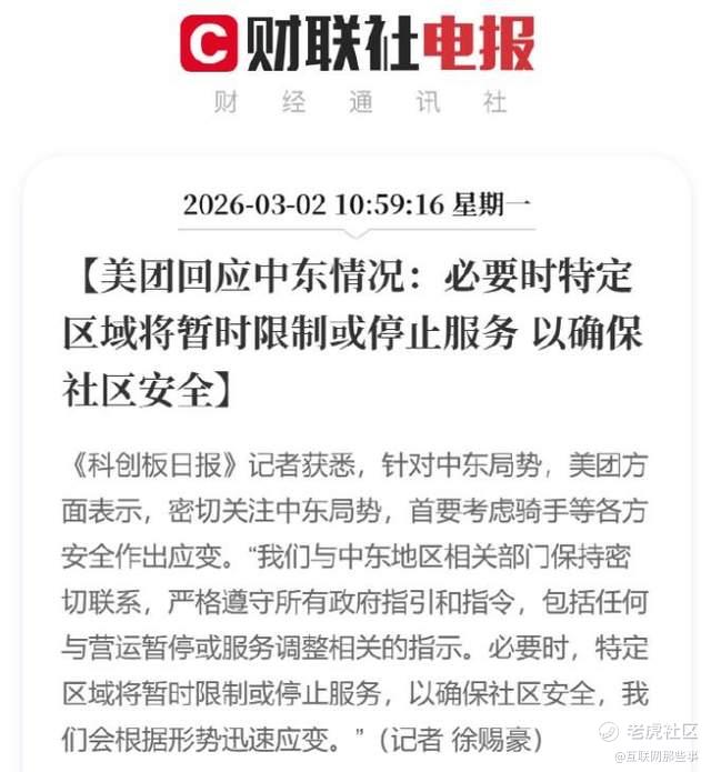 3月1日,央视记者现场直播中东战局的背景里闪现美团小哥送餐的身影;3月2日,美团更直接对中东局势作出了最新回应……