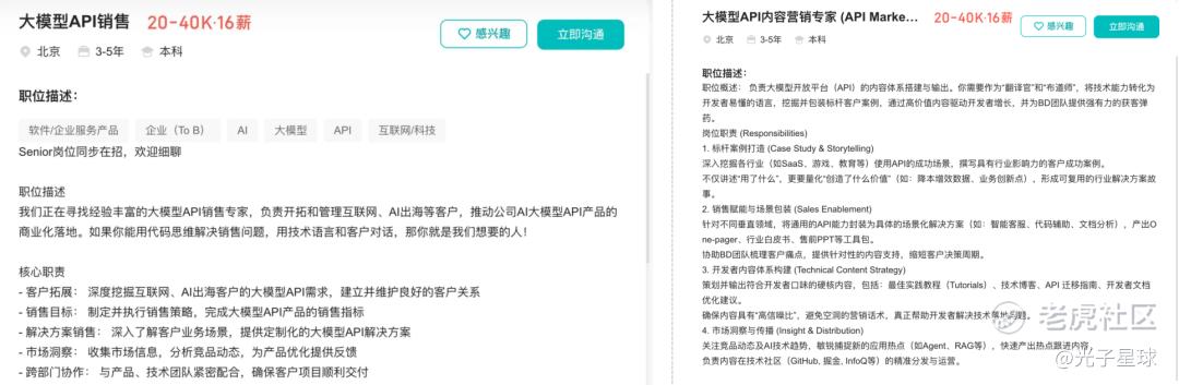 根据招聘网站的职位描述,光子星球发现,月暗在API销售上选择了典型的To B开发者生态打法。这套策略的主线,以技术驱动和开发者生态为核心,组建技术型销售团队理解客户业务场景,提供定制化解决方案。