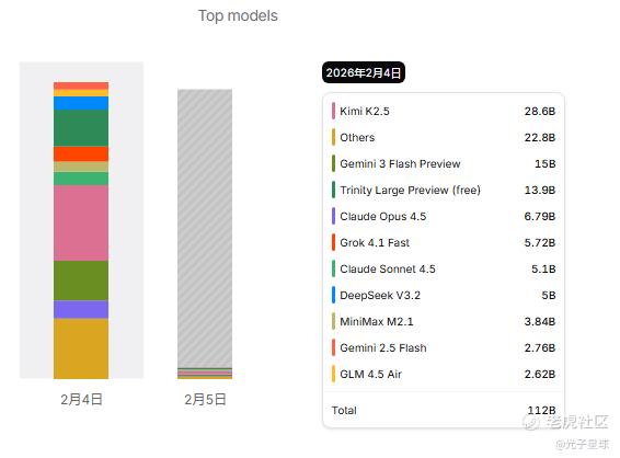 据OpenRouter的数据显示,Kimi K2.5在OpenClaw的模型调用榜中排名第一。