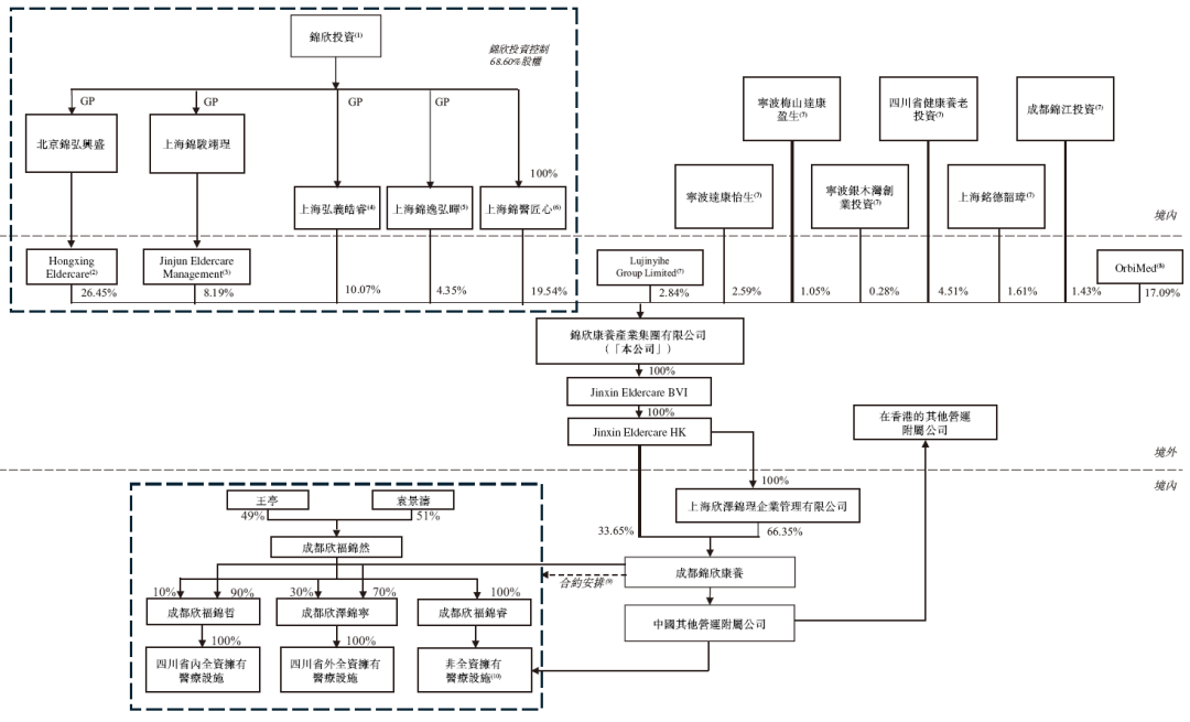 根据招股书披露,锦欣康养在香港上市前的股权架构中,