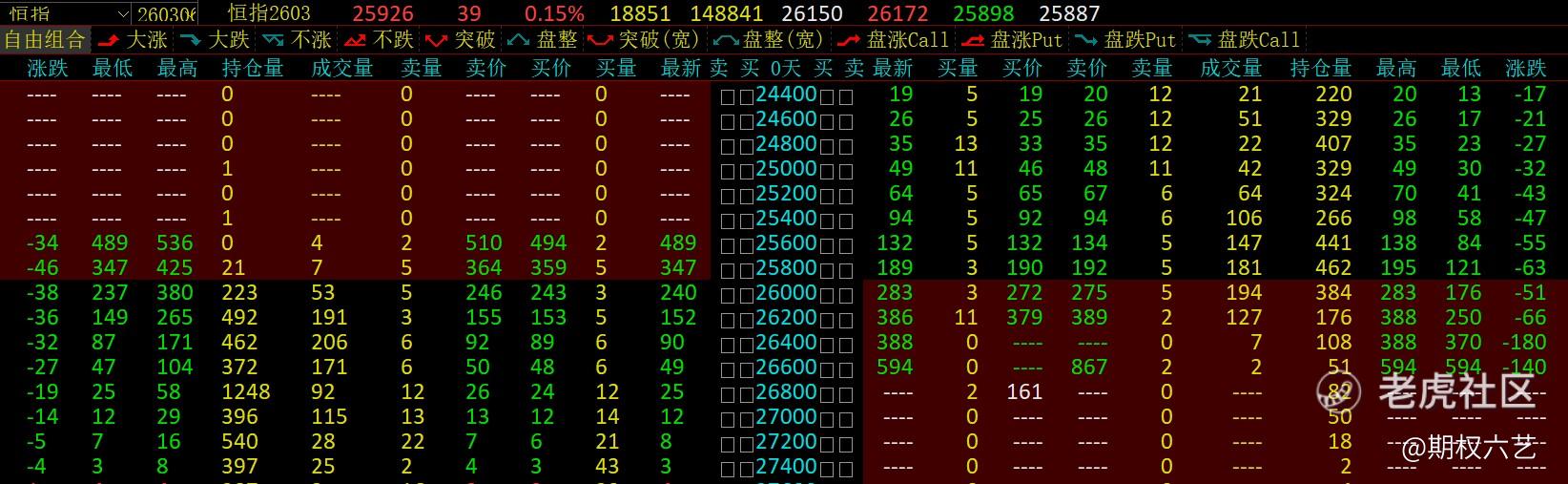恒指期权满屏皆绿,指数变化不大的情况下,认购与认沽齐跌现所谓双杀场面并非稀有现象。波幅指数高位回落时,指数波动又跟不上,两边齐萎缩。对于突发行情的迎头入场投机者尤为不利,买那边都会被萎缩。做买权需经验+技巧,对于波幅指数(恐慌指数)影响需了解。中东事件,恒指仍于两个月内的区间波动,美股不跌反升,企业影响2月初的纳指QQQ连续两日大跌,此次连一日大跌未有,美股VIX仅升8%。 $恒生指数主连 2603(HSImain)$ $纳指100ETF(QQQ)$ $HSI(HSI)$