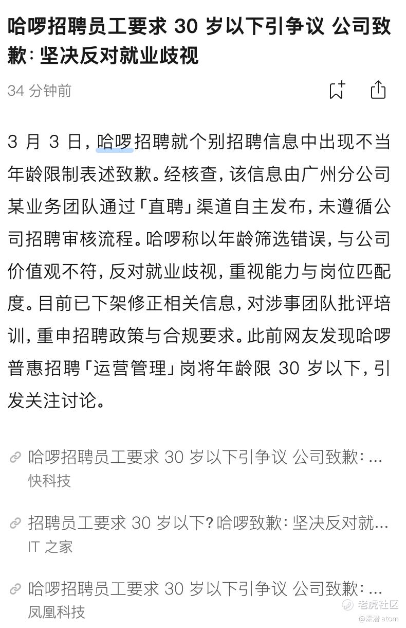 哈啰招聘陷年龄门槛争议:业务线擅自设限引众怒,总部诚恳致歉坚守公平底线