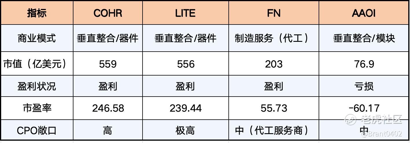 三、核心个股深度对比:COHR、LITE、FN、AAOI