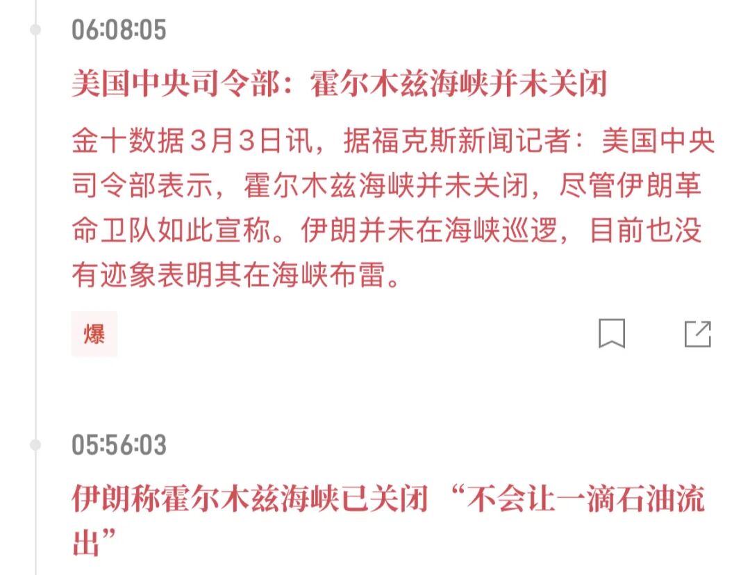 美国中央司令部随即反驳:海峡并未关闭,伊朗未在海峡巡逻,也无布雷迹象。又开始争夺舆论了......