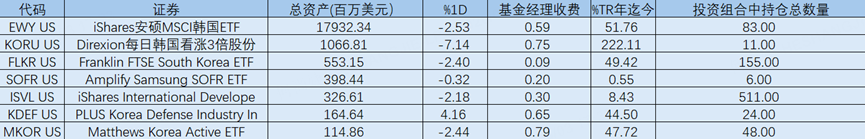反映到ETF上:规模最大的 $韩国ETF-iShares MSCI(EWY)$ 盘前跌幅高达10.9%, $Franklin FTSE South Korea ETF(FLKR)$ 盘前跌幅为10.96%,三倍杠杆的 $Direxion Daily MSCI South Korea Bull 3x Shares(KORU)$ 盘前下跌32.43%。