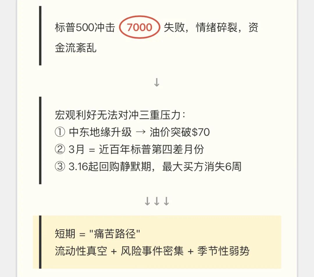 这句话的背景是:标普500指数近期试图突破7000点大关未果,市场情绪脆弱,资金流动呈现明显的不稳定特征。