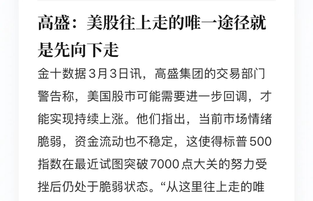 3月2日,高盛交易部门向客户发出一份措辞罕见的报告。交易员Gail Hafif和Brian Garrett写道:"The only way up is down from here(从这里往上走的唯一途径就是向下走)。"