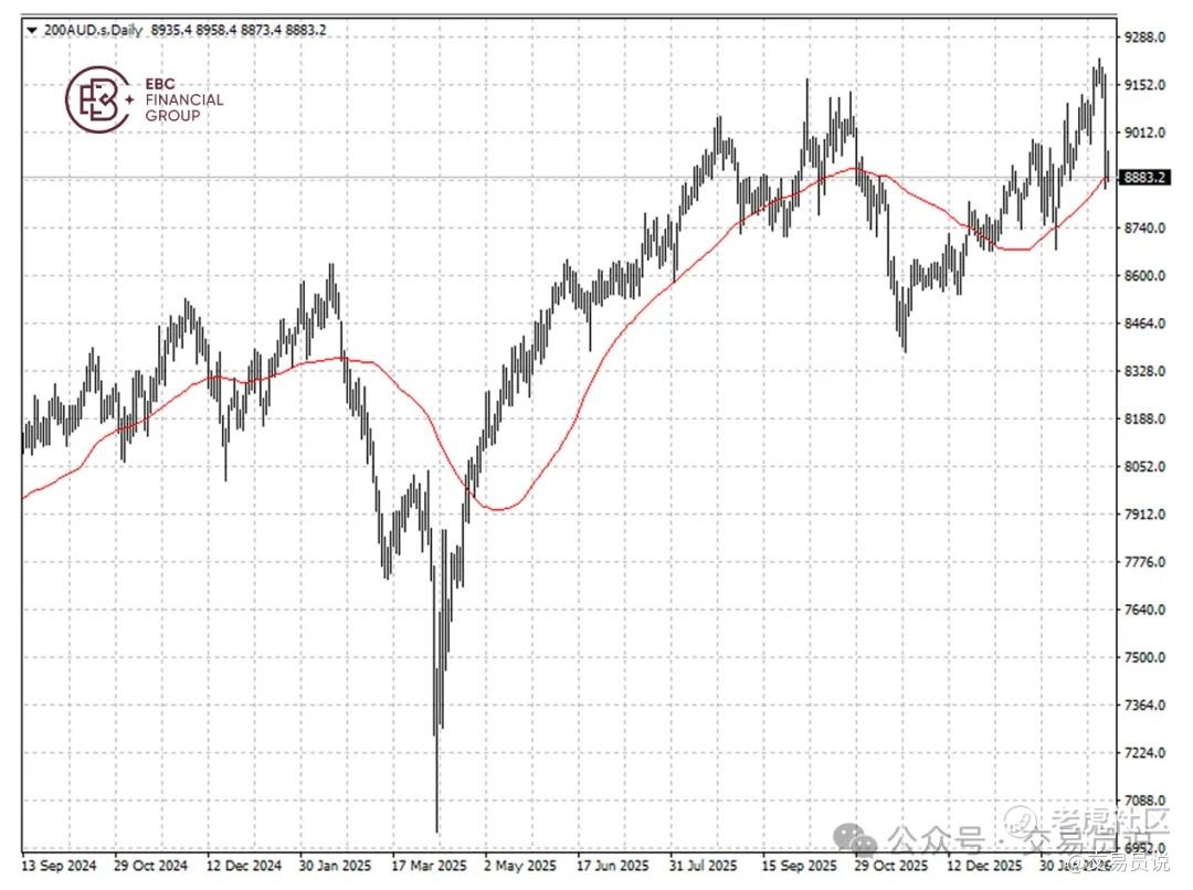 ASX 200在50日均线附近获得喘息,该水平似乎构成强劲支撑。若失守该位,可能急挫至2月6日创下的8676点低位。