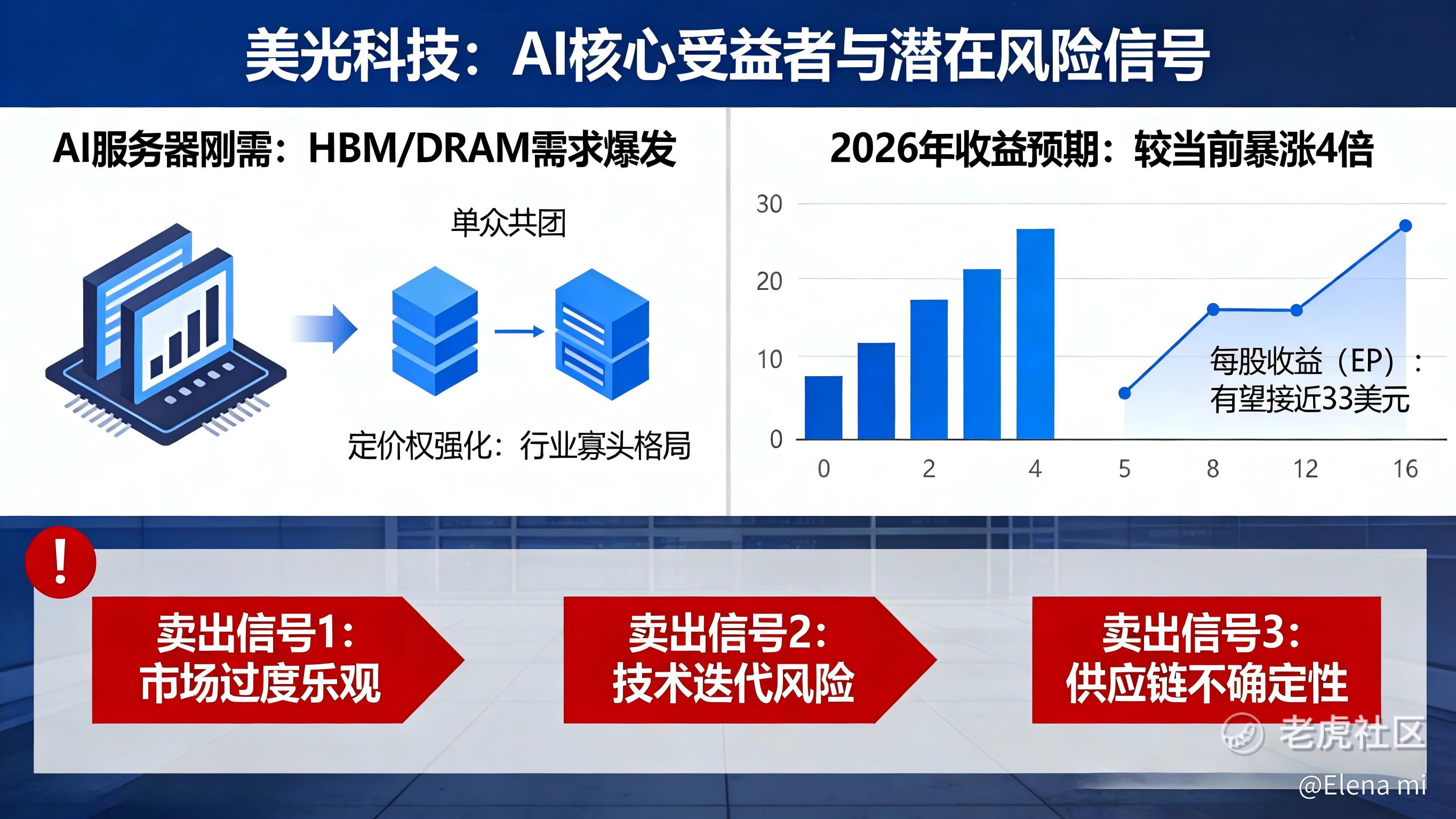 所有人都知道 $美光科技(MU)$ 是AI的核心受益者——AI服务器对HBM、DRAM的刚需,叠加行业寡头垄断带来的定价权,让美光的盈利迎来爆发式增长,分析师预测2026年其收益将暴涨4倍以上,每股收益(EPS)有望接近33美元。