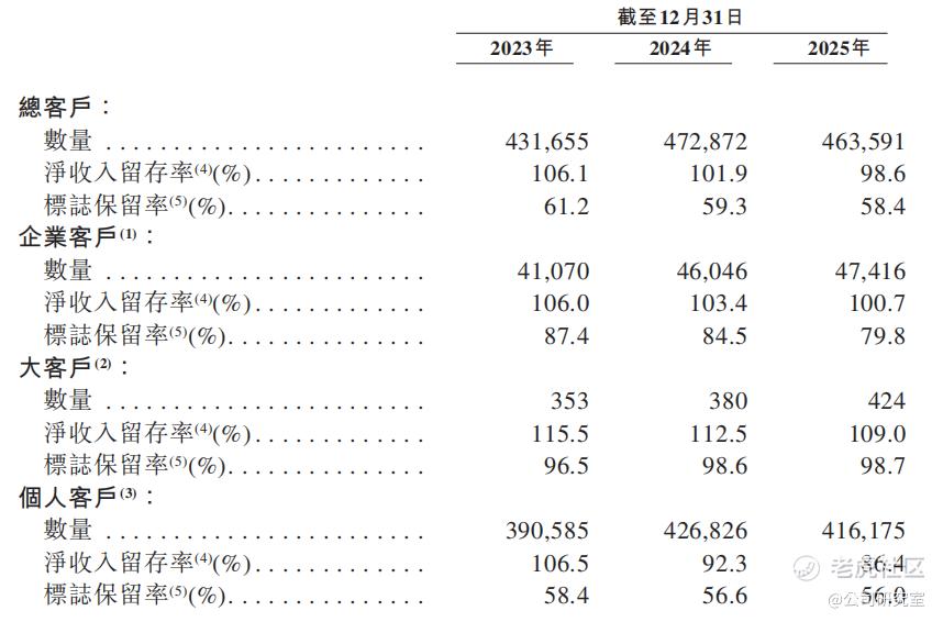 2023年到2025年,群核科技整体净收入留存率(NDR)从106.1%持续下滑至98.6%,首次跌破100%,意味着老客户已无法驱动收入自然增长,未来增长将高度依赖新客户获取。