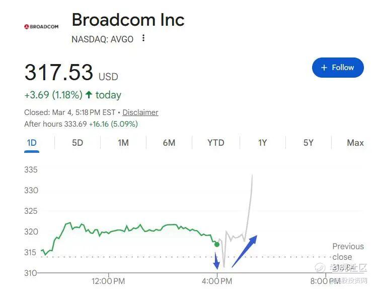 资金意识到,博通不仅仅是短期受益者,而是未来AI基础设施长期扩张的重要参与者。随着这一逻辑逐渐被消化,盘后股价迅速由跌转涨,涨幅一度扩大至5%以上。