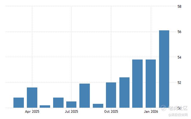 服务业表现明显强于预期。美国2月ISM非制造业PMI升至56.1,创2022年7月以来新高,也远高于市场此前预期的53.5。PMI高于50意味着经济仍在扩张,而56以上的水平通常代表需求依然非常强劲。考虑到服务业占美国经济比重接近70%,这一数据直接强化了市场对美国经济韧性的信心。