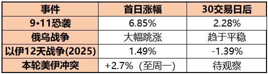 历史数据清晰揭示:黄金在冲突初期往往冲高,随后在30个交易日内回归。