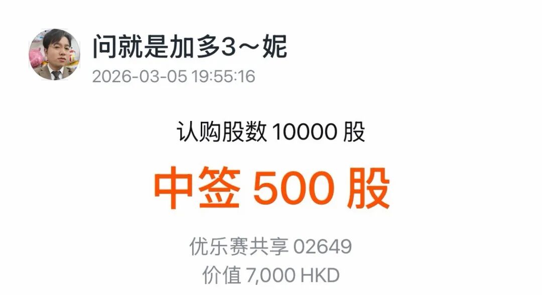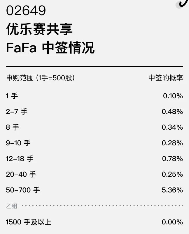 $优乐赛共享 (02649.HK)$ 全员抽签,顶头20%,乙头12%,甲尾22%