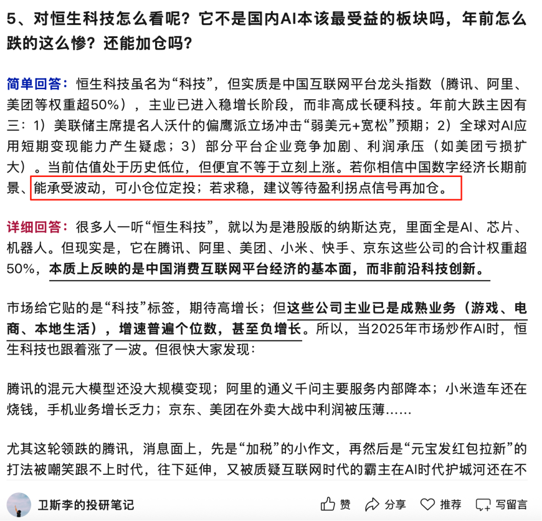 最近网上关于恒科的段子很多,身边很多朋友也有问我对恒生科技的观点,其实我在春节发的文章里已经详细讲过(如何在假期跟家人聊投资?):
