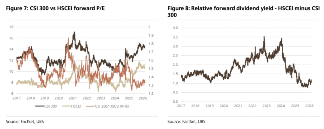 2)H股相对于A股的股息率和估值优势已不如过去显著;