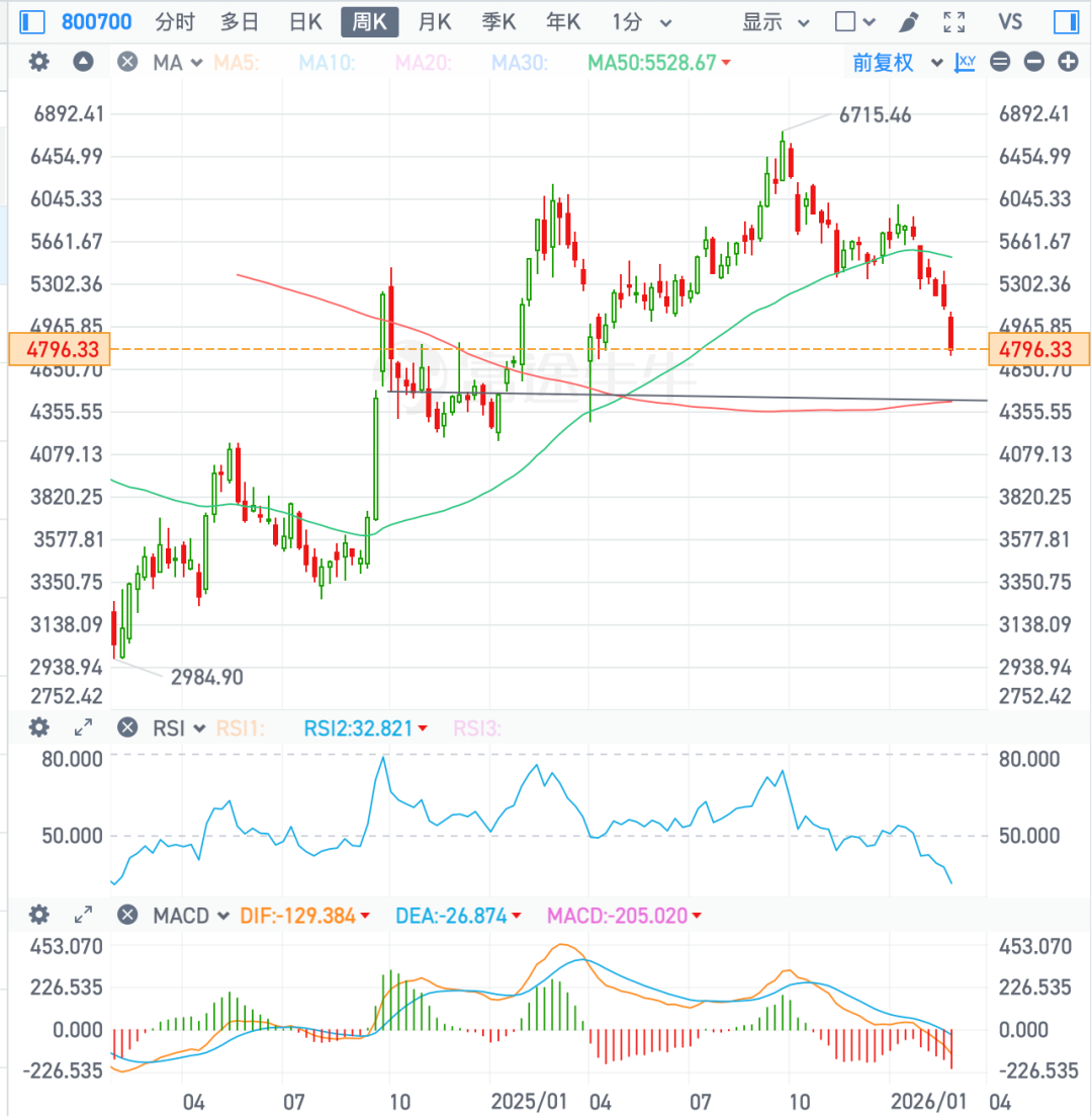 从周线图看,支撑位在4450附近(200日均线),也与去年4月“解放日”创下的低点一致。