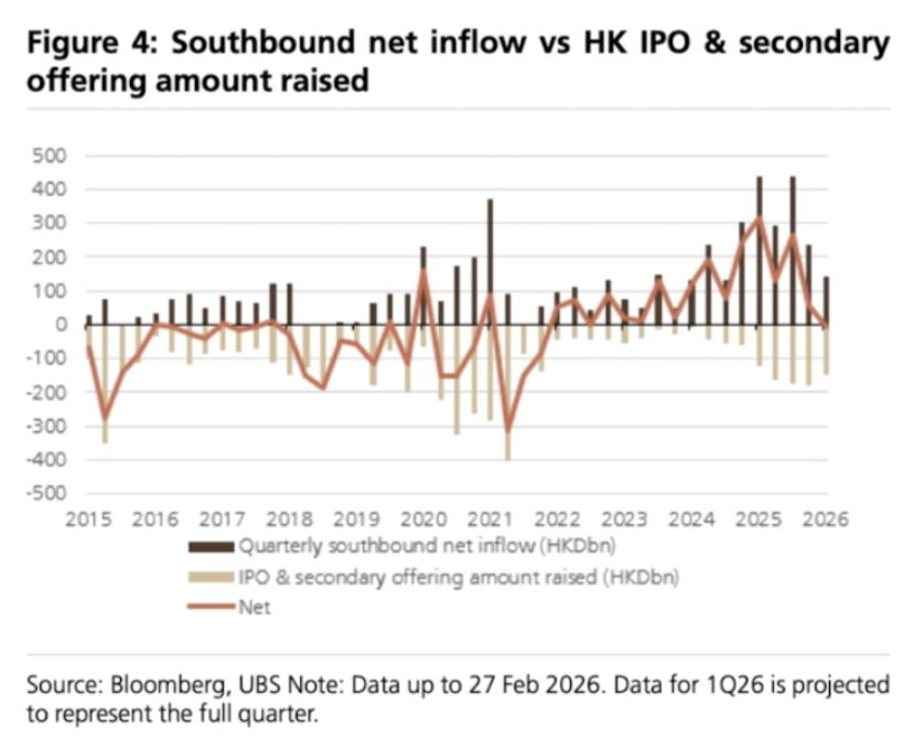 5)而且港股IPO及股权融资活动仍处高位,大幅抵消了南下资金的流入效果。