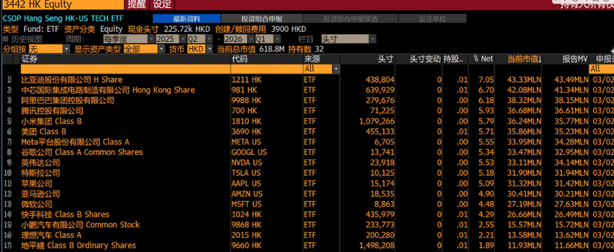 我看了下香港和美股市场的ETF,像嘉实这样,两边都下注的并不多,唯一比较接近的是 $南方港美科技(03442)$ ,但其持仓股只有32只,其中,美股只有7只,无论是权重占比还是覆盖度,都远低于嘉实中美科技50: