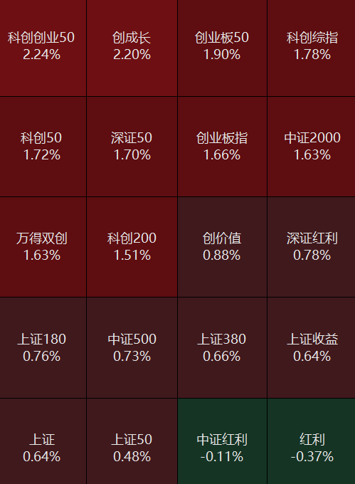 沪指收盘涨0.64%,报4108.57点,深证成指涨1.23%,报14088.84点,创业板指涨1.66%,报3216.94点,北证50涨1.12%,报1427.23点,科创50涨1.72%,报1405.35点。