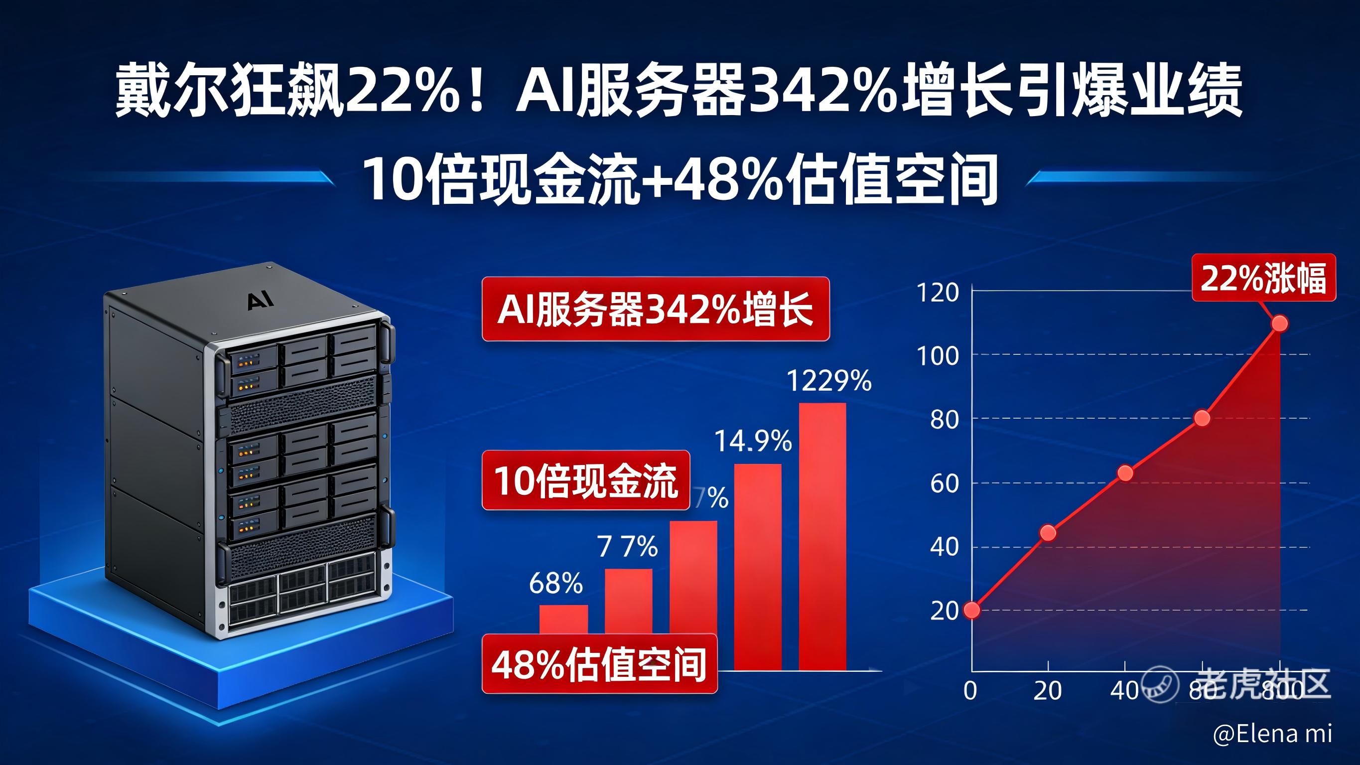 戴尔狂飙22%!AI服务器342%增长引爆业绩,10倍现金流+48%估值空间
