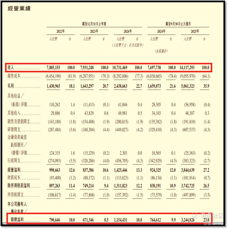 受益于AI带动高阶PCB产品的大规模出货,胜宏科技的盈利水平也实现质的提升,毛利率从21.6%跃升至2025年前九个月的35.9%;对应归母利润达32亿元,同比激增324%。