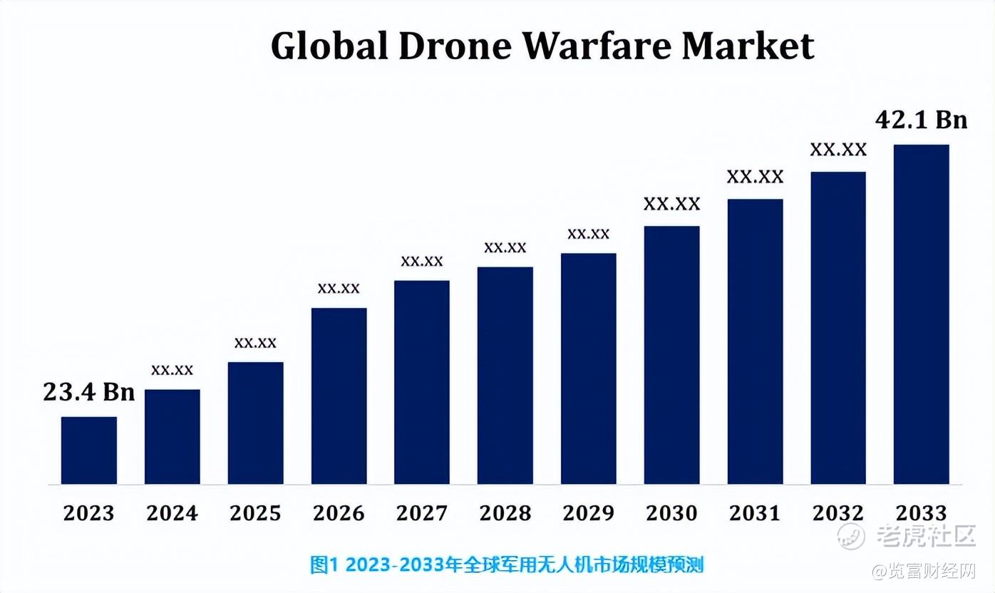 从行业层面来看,无人机行业正迎来发展黄金期。随着国防建设的加速推进,无人机作为集现代化、智能化于一体的消耗型武器装备,正迎来前所未有的大批量采购良机。国际方面,国际形势复杂多变,海外多国对我国无人机及相关产品的需求迫切,呈现出加速增长的态势。根据Spherical Insights咨询公司的数据,预计2033年全球军用无人机市场规模将达421亿美元,2023年至2033年期间复合年均增长率(CAGR)为6.05%。