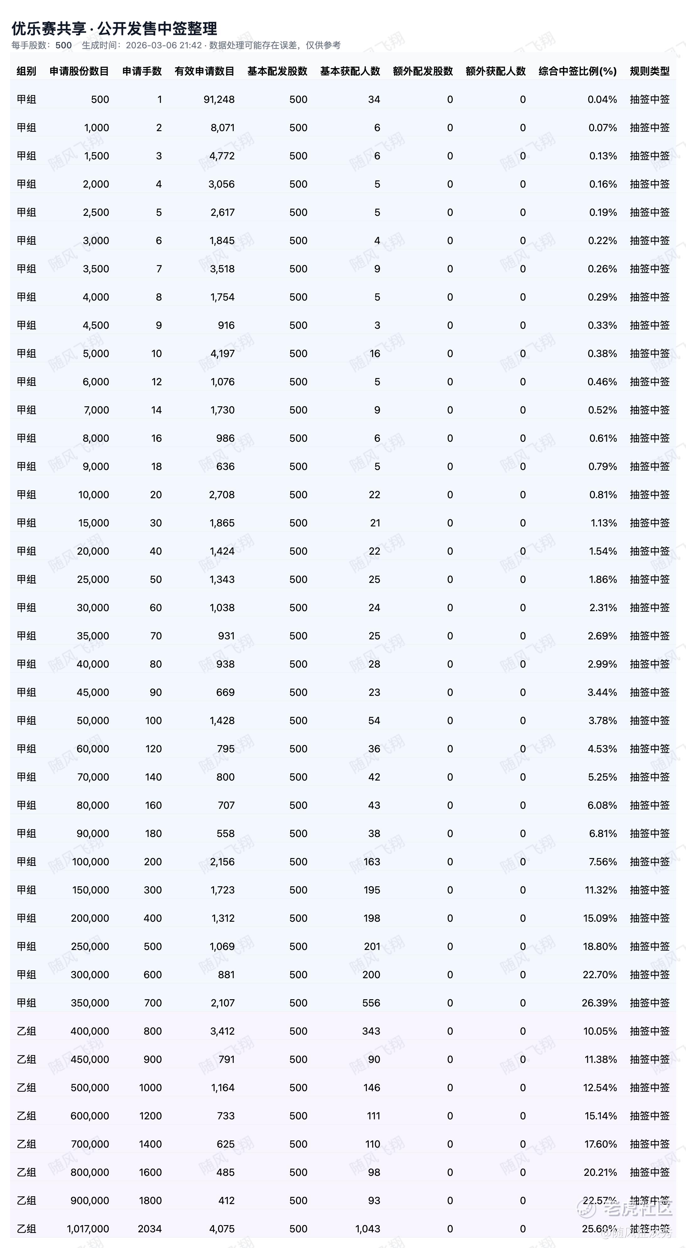 各档位中签率公布!
