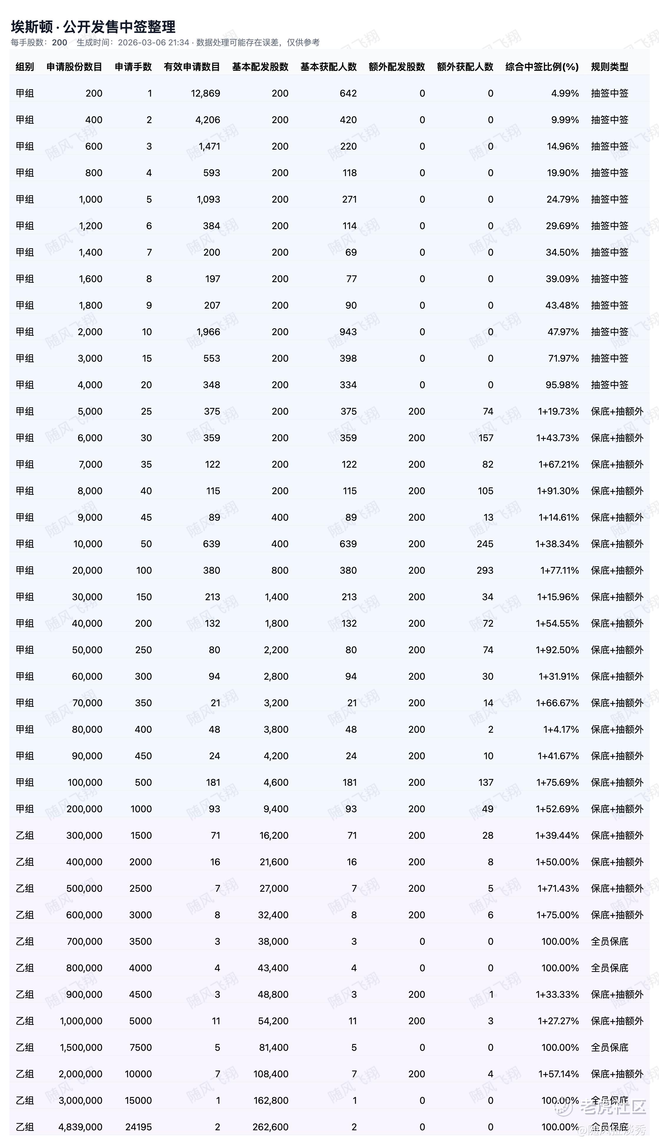 各档位中签率公布!