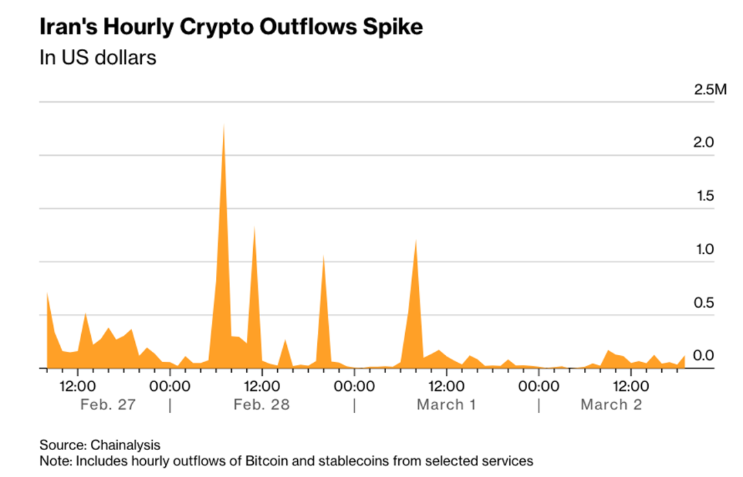 5、在美以对伊朗发动空袭后,链上数据显示伊朗加密货币交易所的资金流出量出现剧烈峰值。根据Chainalysis的监测,空袭开始后的峰值小时内,约有230万美元的比特币及稳定币流出,较平日均值高出873%。另一家分析公司Elliptic也观察到,伊朗最大交易所Nobitex的流出量在袭击后一度飙升700%,达到289万美元。在货币贬值、高通胀和地缘冲突背景下,普通公民与政府实体(包括其中央银行和军方)均在利用数字资产进行资产保值和规避国际制裁。