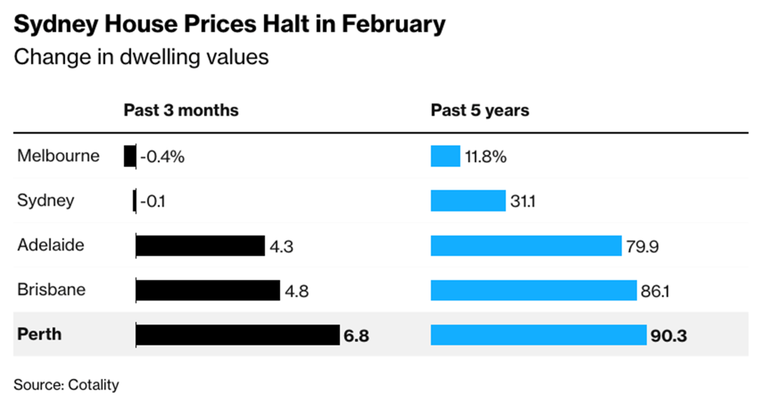 7、尽管澳大利亚联储于2026年2月加息,悉尼房地产市场在过去三个月仍微跌0.1%,陷入停滞。与此同时,库存极低的珀斯和布里斯班同期房价分别强劲上涨6.8%和4.8%。悉尼房价在过去五年上涨31.1%后已触及瓶颈,而珀斯和布里斯班五年涨幅分别高达90.3%和86.1%。在市场预期利率将进一步升至4.1%的背景下,未来增长动力预计将集中于政府提供5%首付担保计划的低价位市场。