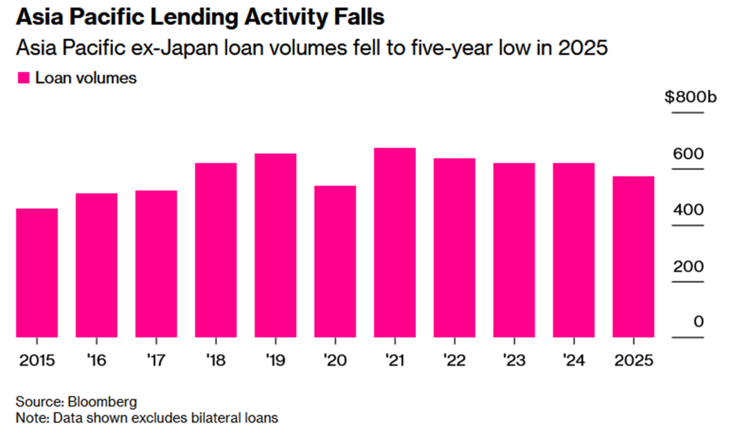 6、2025年亚太地区(除日本外)市场的贷款总额下降7.4%至五年低点5720亿美元,但中资银行却凭借更优的定价和更长的还款期限,实现了逆势扩张,其在海湾地区的银团贷款额于2025年增至创纪录的157亿美元,远超欧美银行约46亿美元的总和。国际银行也更多通过与中资银行组建混合银团来适应这一趋势,如阿布扎比主权财富基金ADQ的50亿美元银团贷款中,近半数参与机构为中资银行。