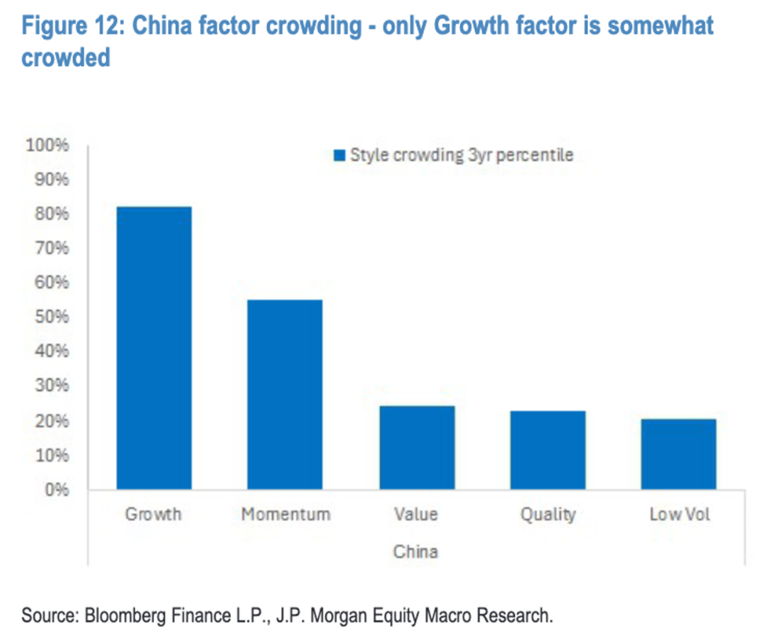 8、中国股市的主要因子中,仅成长因子面临交易拥挤的局面,其三年期百分位读数已超80%高位。相比之下,动量因子维持在55%的中性水平,而价值、质量及低波因子拥挤度均低于25%,处于历史低位区间。