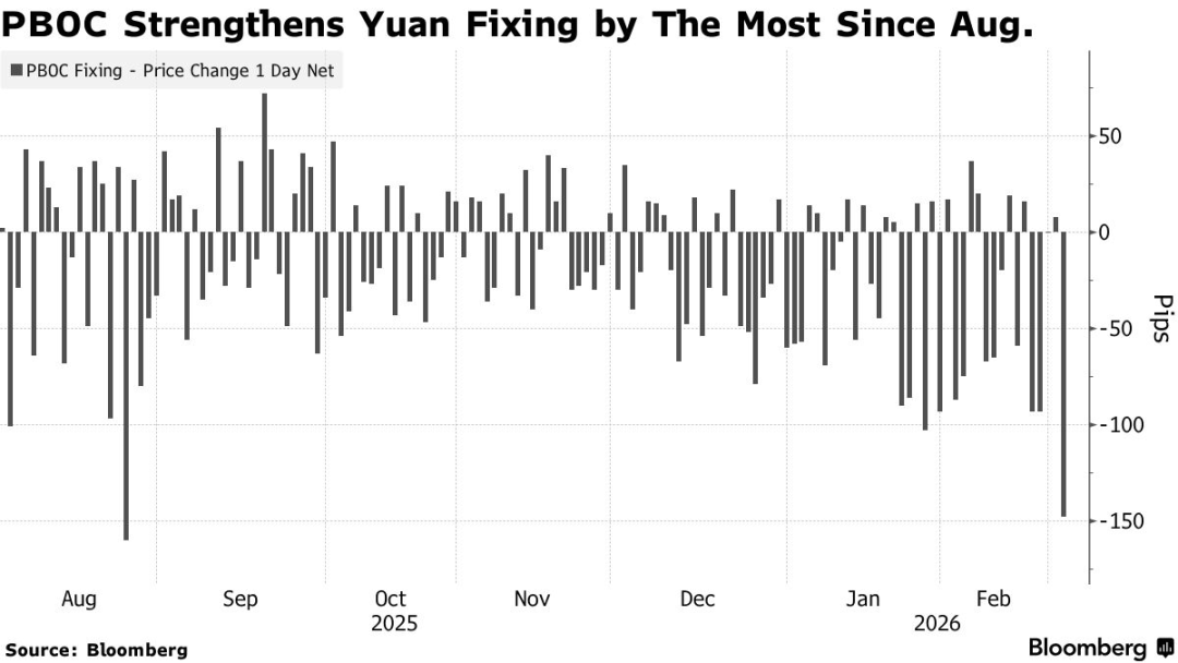 5、周二人民币兑美元中间价单日上调幅度创下自2025年8月以来的最高纪录,推动在岸人民币汇率录得十个月来最大单日涨幅,一度升值0.5%至6.8750。此举发生在中国央行上周五刚刚取消了外汇远期合约20%准备金要求之后,市场分析认为,央行意在通过此举传递稳定汇率的信号,以在关键时期锚定市场信心。这一操作也表明,尽管此前有放缓升值步伐的举动,但决策层当前仍对人民币温和走强持开放态度。