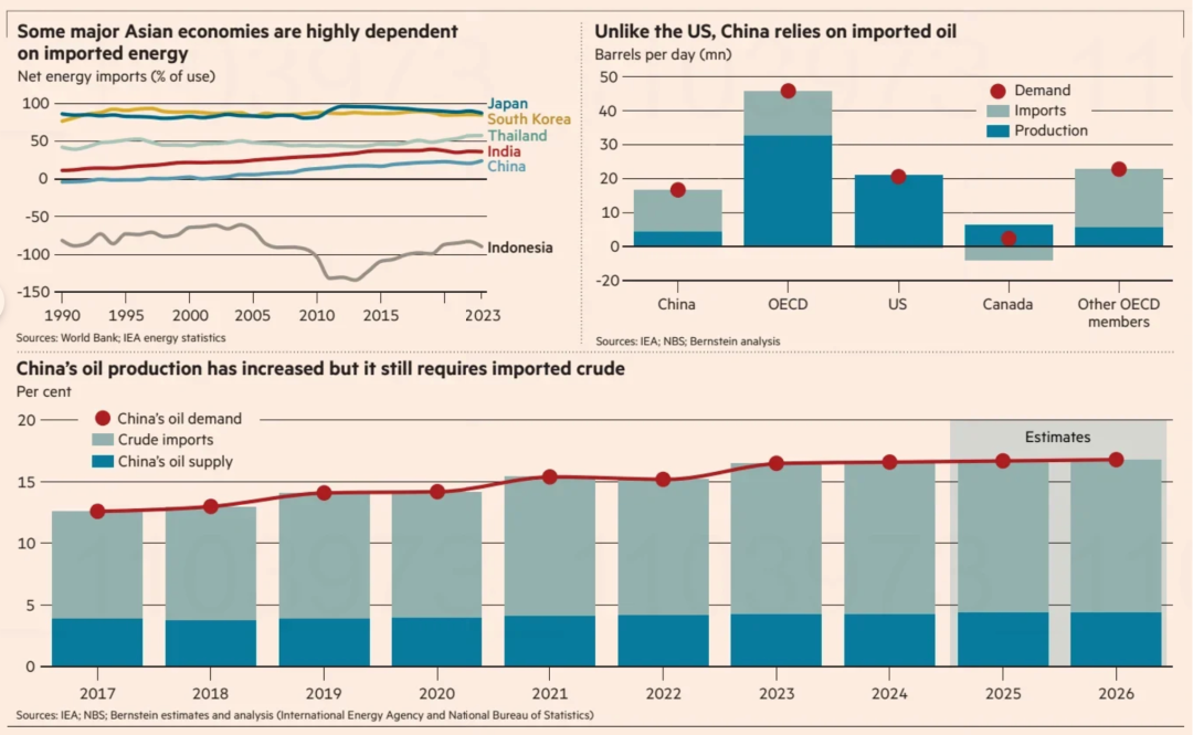1、面对霍尔木兹海峡航运中断引发的能源供应安全威胁,中国已对国内主要炼油企业下达指令,要求其暂停除航空燃油、船用燃料及对港澳供应外的绝大多数成品油出口。此举旨在优先保障国内燃料供应并防止原油库存快速下降,但据能源咨询机构Rystad Energy分析,这项出口禁令可能导致炼油厂从下周起降低加工量。为进一步对冲中东供应中断的风险,分析人士普遍预计,中国将增加从俄罗斯的原油采购,并可能动用其战略石油储备作为备用措施。这些应急反应的背后,是中国长期存在的能源结构性问题,其国内原油产量增长停滞,远无法满足持续攀升的消费需求,导致进口依赖度不断加深。
