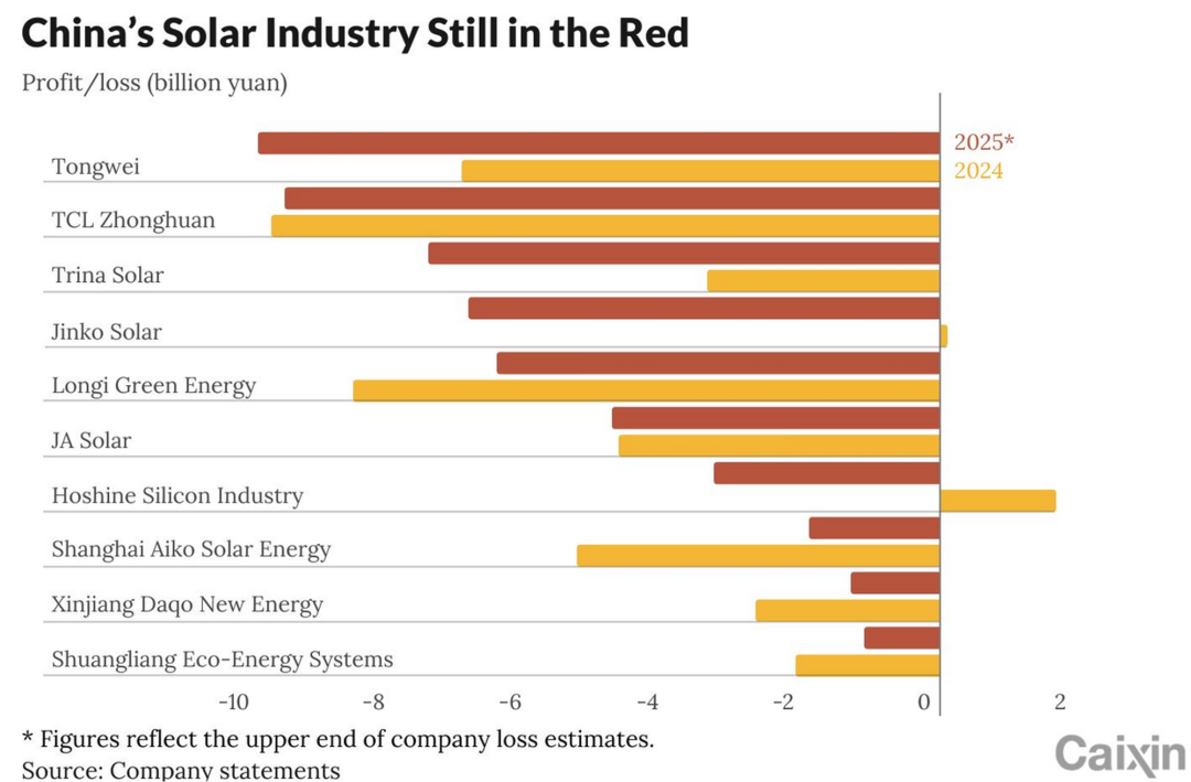 3、2025年,中国上市光伏企业的合计亏损预计将超过500亿元人民币,其中通威股份、TCL中环等头部企业的预亏额度均接近百亿元,与2024年多数企业仍能维持盈利或微亏的状况形成剧烈反转。其根源在于极端的产能过剩,行业年产能已超1.8太瓦,数倍于约400吉瓦的全球年新增装机需求,进而触发了自2023年以来导致组件价格下跌42%的恶性价格战。同时,2025年5月的补贴改革抑制了国内需求,而2026年4月起即将取消的出口退税则进一步封堵了利润空间。目前行业正被迫进入一场深度洗牌,预计需淘汰20%至30%的产能方可恢复平衡,而政府正通过提高N型电池效率等技术门槛的新规,引导资源向具备技术优势的头部企业集中。