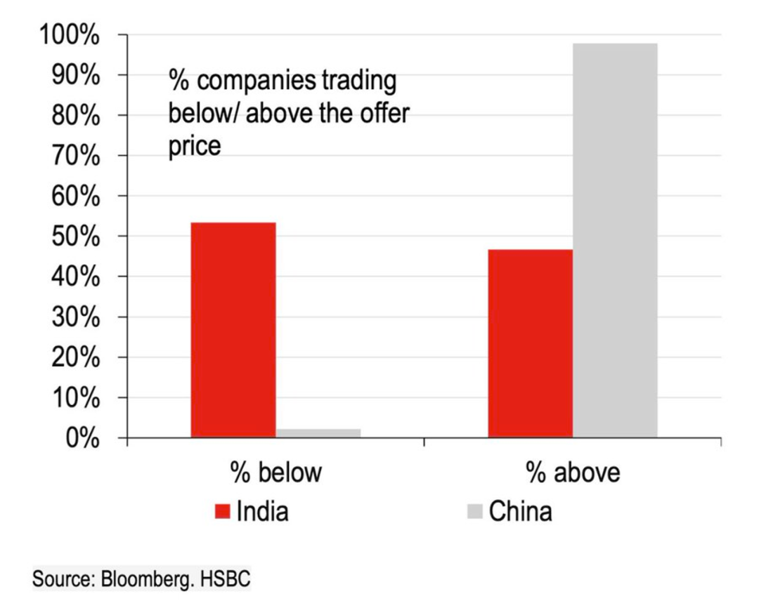 6、中国与印度的新股发行市场在去年的上市后表现呈现巨大差异,数据显示超过90%在中国上市的公司股价高于其发行价,而在印度市场,超过一半的新上市公司股价已跌破发行价。印度的普遍破发现象主要源于其市场化的定价机制,该机制允许发行人在热门行业中以较为激进的估值进行募资,从而压缩了二级市场的初始获利空间,当宏观环境变化或公司基本面不及预期时,股价极易面临调整压力。而中国的新股定价仍常受到窗口指导,其市盈率往往低于同业上市公司,这在制度上为上市后的上涨预留了空间。