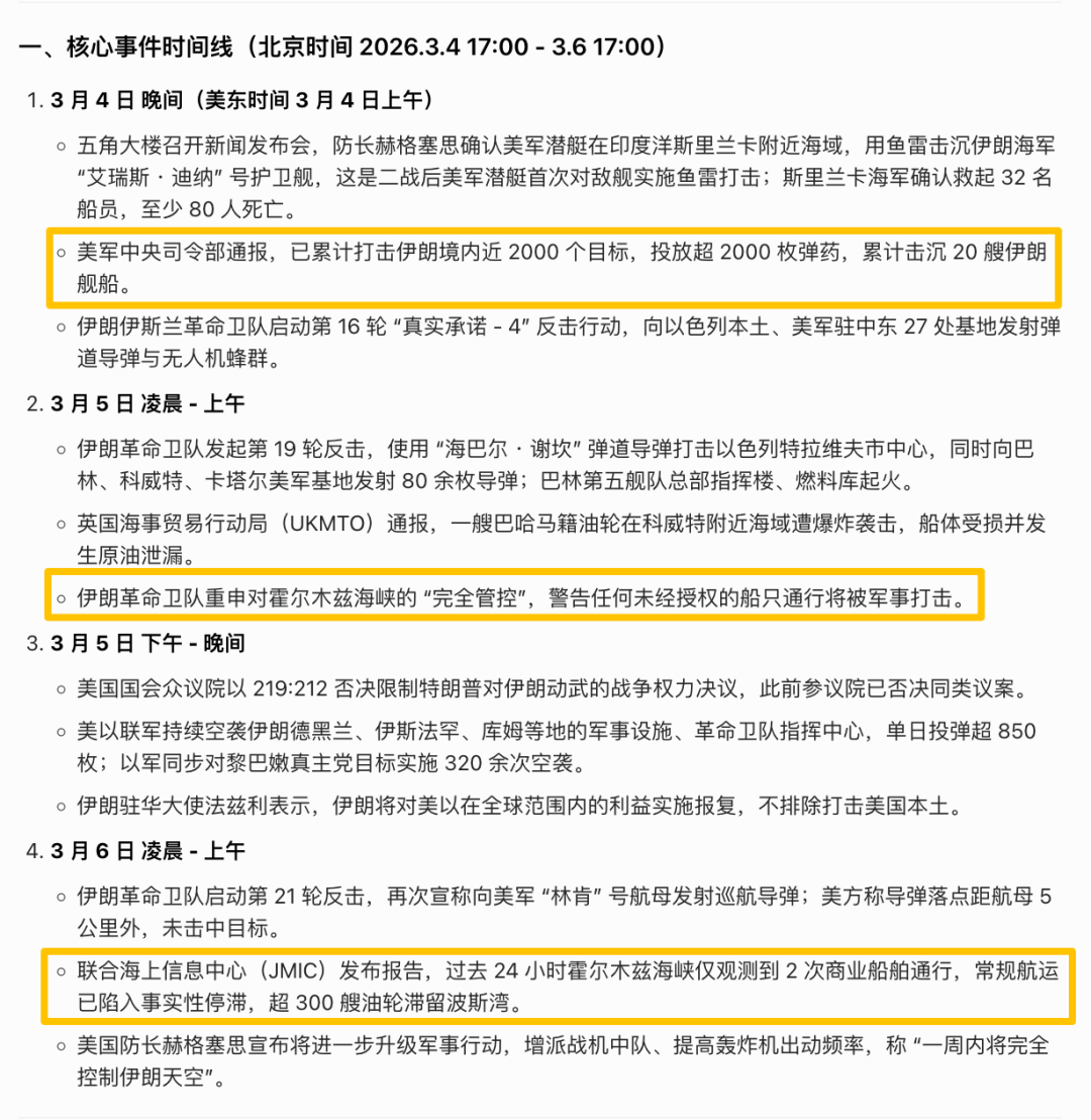 所以你可以理解,即使90%的可能,霍尔木兹海峡在4周内或者2周内同通航,但是仍旧有10%的可能会长期关闭。一旦长期关闭,我们手中绝大部分资产将都会面临巨大的冲击。这也是我们本周三会员内部反复提到的大家即使要卖你们手中的电网、油服设备、油、铝、黄金、工程机械、煤化工等等标的,我建议也只是先卖20%。