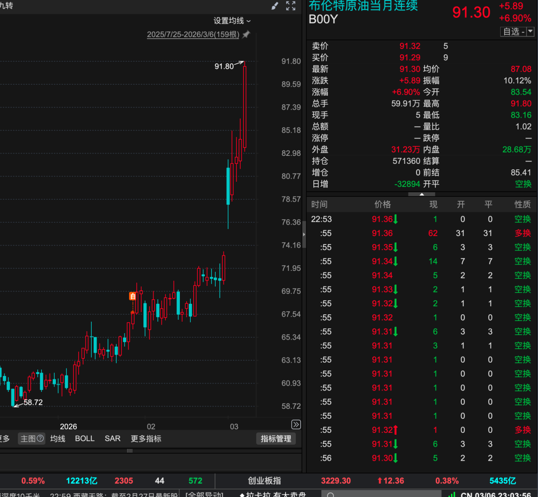 各位,刚刚布伦特原油已经突破90了,我看了下,日内涨幅差不多7%左右了: