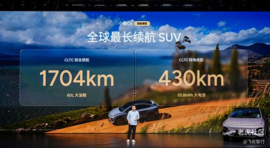 据飞说智行获悉,小鹏汽车近日举行小鹏G6超级增程上市发布会,小鹏G6超级增程正式上市。