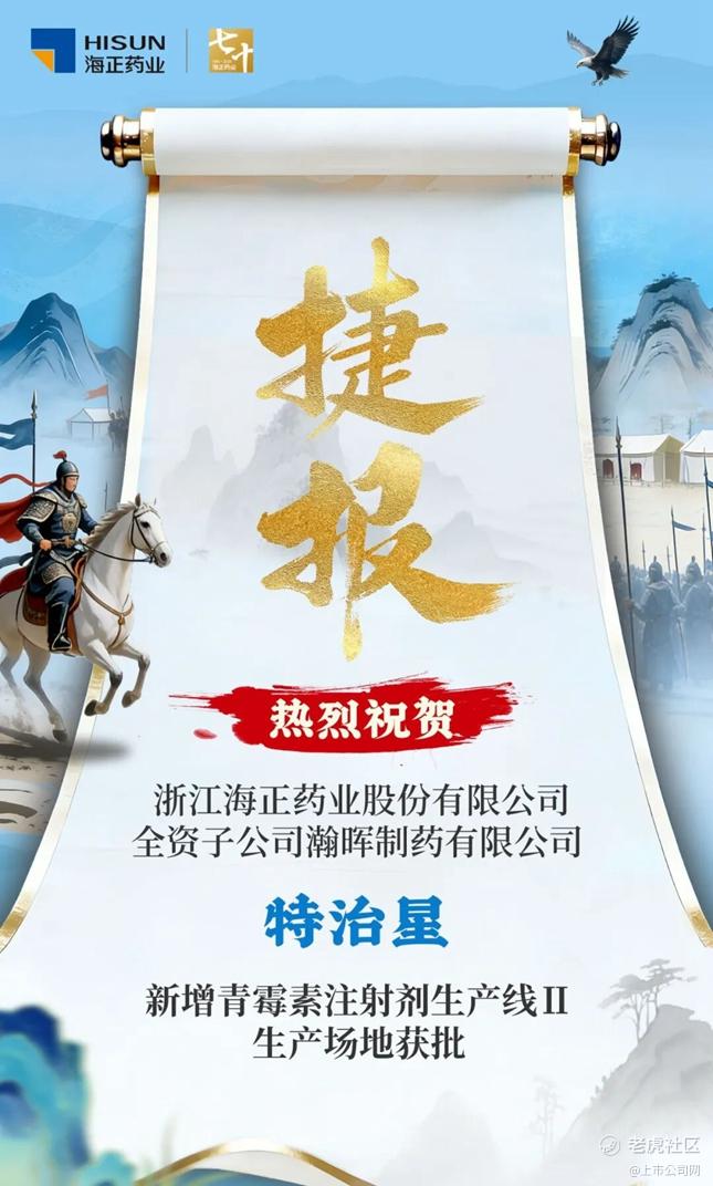 3月4日,海正药业全资子公司瀚晖制药有限公司,获准新增青霉素注射剂生产线Ⅱ生产场地用于特治星生产。此次获批,既是对公司生产技术与质量管控水平的高度认可,也进一步强化了公司在抗感染药物领域的生产保障能力,缓解临床用药紧张局面,并以稳定可靠的品质,为广大患者提供值得信赖的优质治疗方案,充分彰显了公司深耕医药行业的责任与实力。