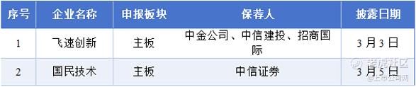 3月1日至3月7日期间,飞速创新、国民技术共2家公司通过聆讯。