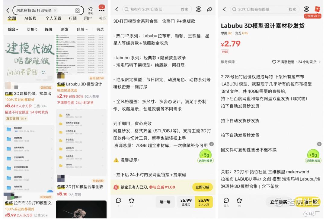 也有不少人将相关模型文件制成了文件包,在闲鱼等平台出售,定价从几元到十几元不等。