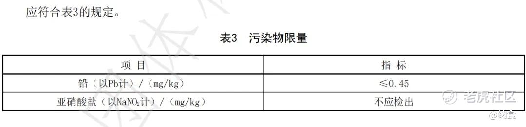 2. 污染物限量:亚硝酸盐“不应检出”,铅限量严于国标国家标准现状:
