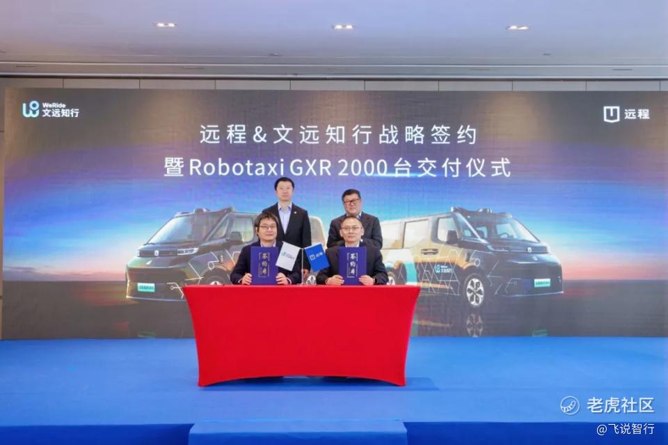 据飞说智行今日获悉,文远知行WeRide与吉利远程新能源商用车集团(下称“吉利远程”)签署战略合作深化协议,发布全新升级版前装量产Robotaxi GXR,并宣布2026年预计交付2,000台Robotaxi GXR,投放至国内和海外市场,全面迈向Robotaxi全球规模化商业运营新阶段。