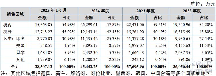 面对美国市场的大幅萎缩,彩客科技试图通过开拓印度、日本等海外市场,以此填补美国市场留下的营收缺口,但从实际效果来看,这种做法更像是“拆东墙补西墙”,并不能完全对冲相关风险。