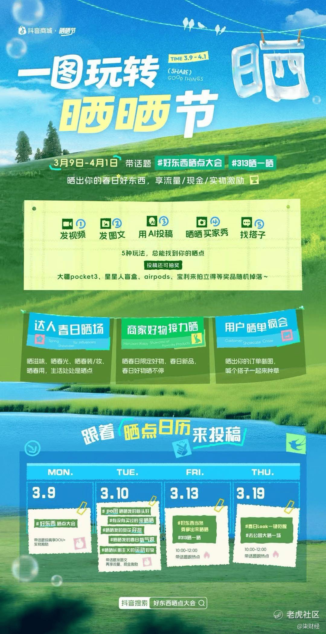 图说:“晒晒节”活动日历,欢迎大家在3月13日活动bigday都来抖音晒一晒