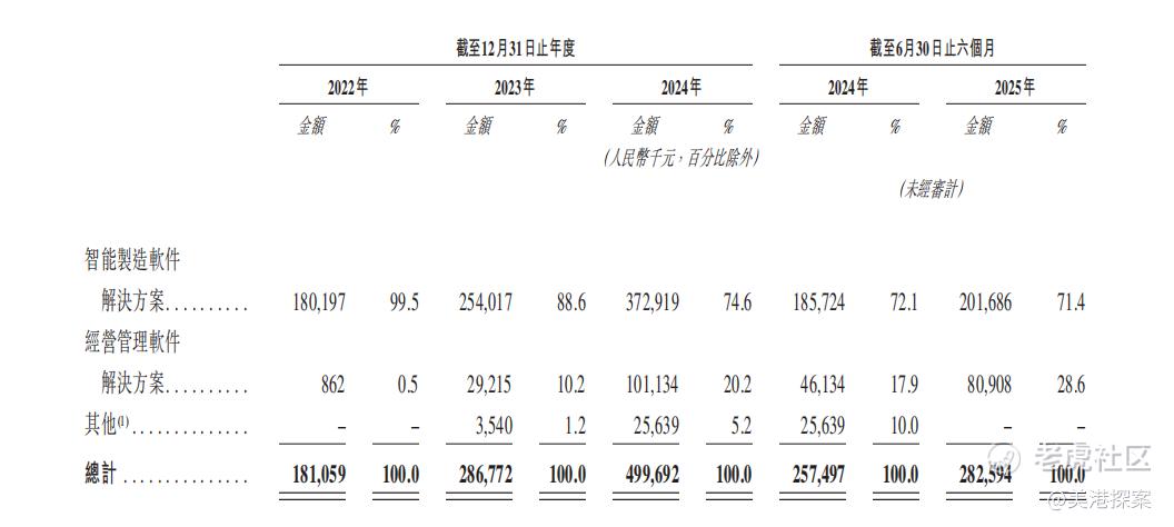 值得注意的是,赛美特业务结构正在持续优化。2022年时,智能制造软件解决方案占总营收的99.5%,而到2025年上半年,经营管理软件解决方案收入占比已提升至28.6%,收入金额从86.2万元激增至8090.8万元,2022-2024年复合增长率高达959.9%,显示出强大的业务拓展能力。