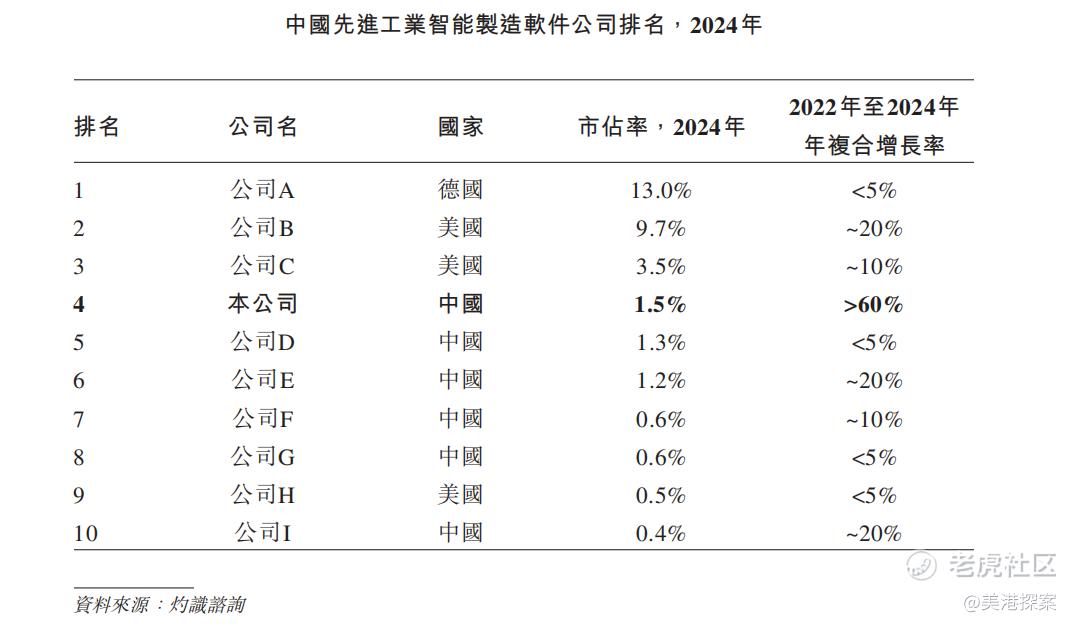 灼识咨询数据显示,赛美特是中国先进工业智能制造软件市场中收入规模最大的本土供应商,也是国内首家且目前唯一一家全自动CIM解决方案通过多家12英寸晶圆厂验证并投入量产的企业。在2024年收入排名前十的中国智能制造软件公司中,赛美特2022至2024年收入复合年增长率位列第一。